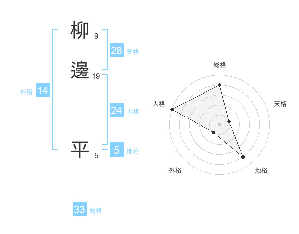 柳邊 平さんの総格は33画の4点!