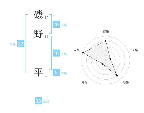 磯野 平さんの人格は16画の5点!