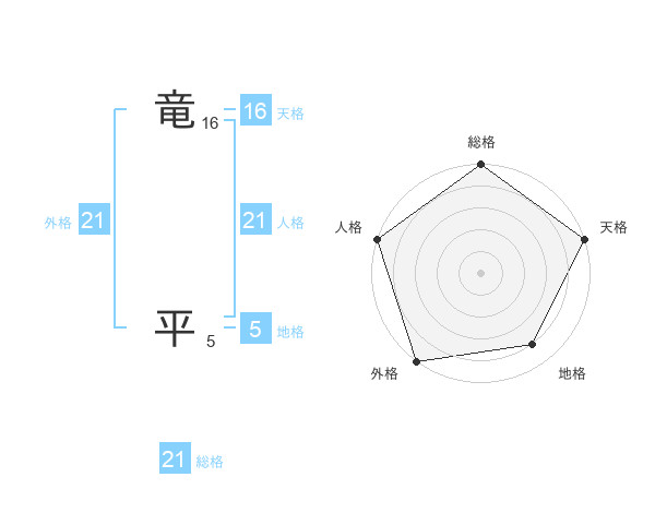 竜 平さんの外格は21画の5点!