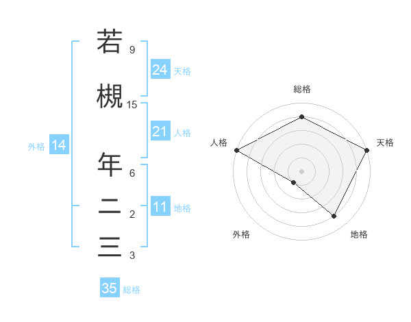 若槻 年ニ三さんを姓名の画数から五運を鑑定