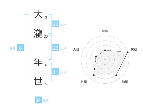 大瀧 年世さんを姓名の画数から五運を鑑定