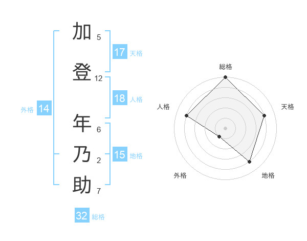 加登 年乃助さんを姓名の画数から五運を鑑定