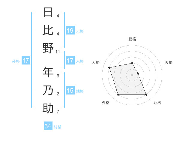 日比野 年乃助さんを姓名の画数から五運を鑑定