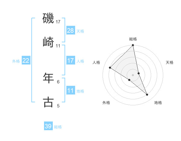 磯崎 年古さんの総格は39画の5点!