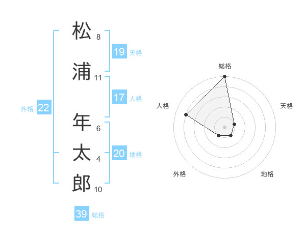 松浦 年太郎さんの総格は39画の5点!