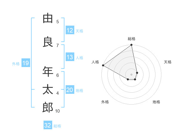由良 年太郎さんを姓名の画数から五運を鑑定