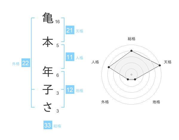 亀本 年子ささんの天格は21画の5点!