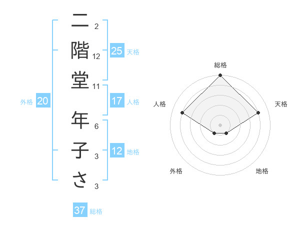 二階堂 年子ささんの天格は25画の4点!