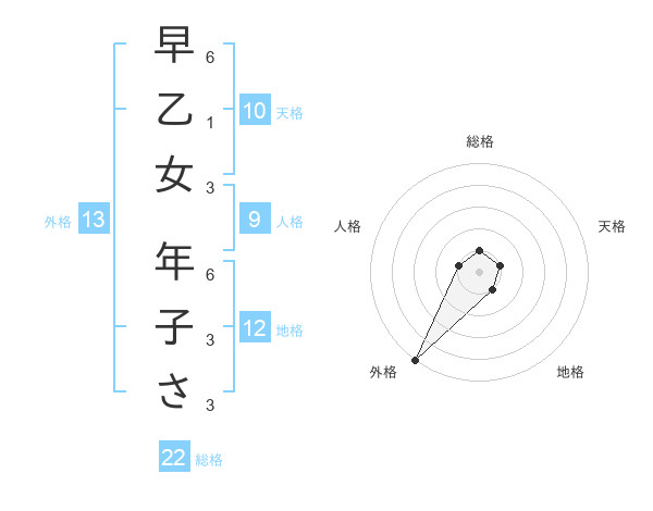 早乙女 年子ささんを姓名の画数から五運を鑑定