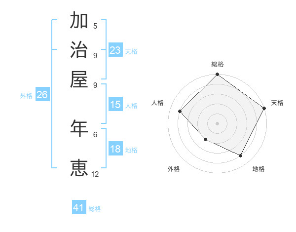 加治屋 年恵さんを姓名の画数から五運を鑑定