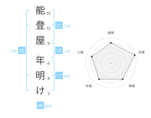 能登屋 年明けさんの総格は48画の4点!