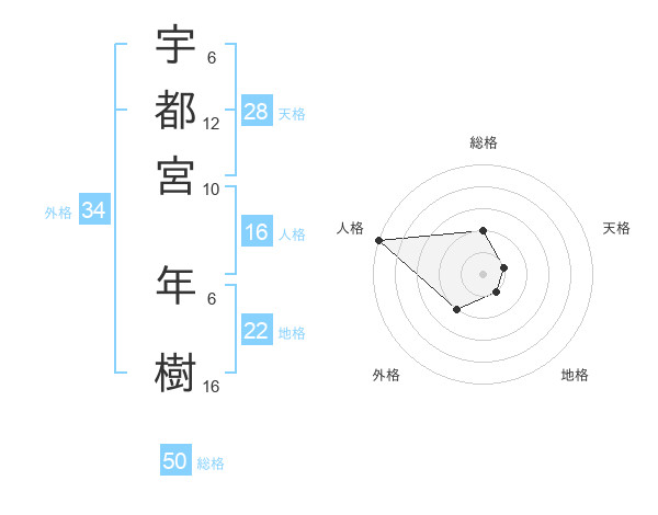 宇都宮 年樹さんを姓名の画数から五運を鑑定