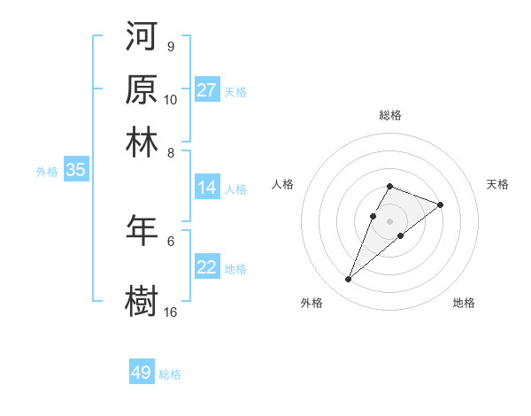 河原林 年樹さんの総格は49画の2点!