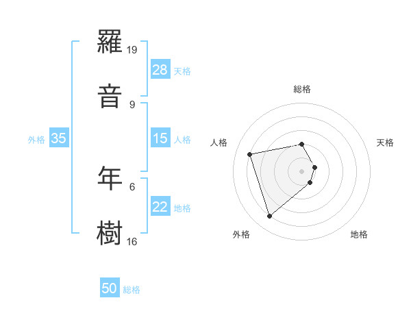 羅音 年樹さんを姓名の画数から五運を鑑定