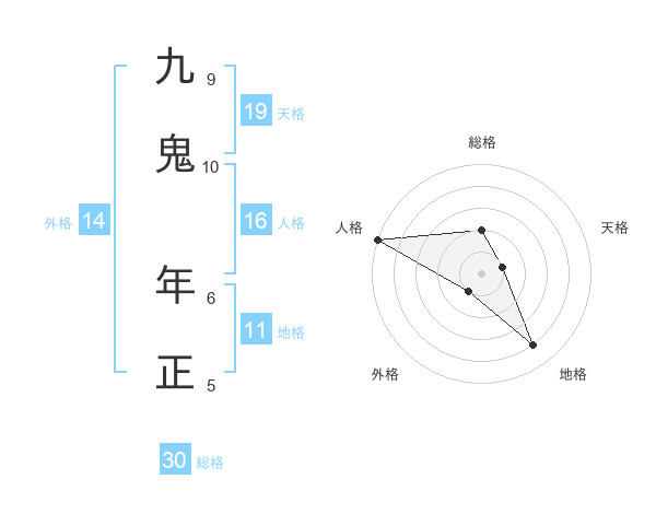 九鬼 年正さんを姓名の画数から五運を鑑定