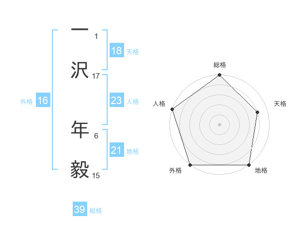 一沢 年毅さんを姓名の画数から五運を鑑定