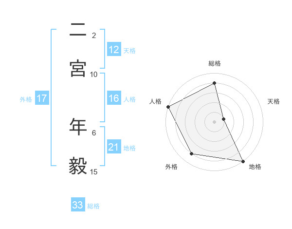 二宮 年毅さんを姓名の画数から五運を鑑定