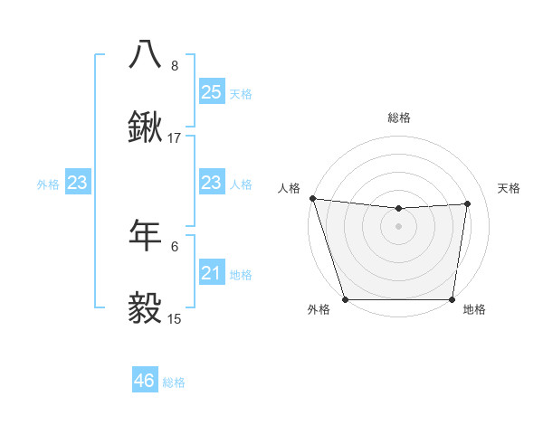 八鍬 年毅さんの外格は23画の5点!