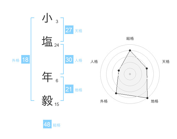 小塩 年毅さんの総格は48画の4点!