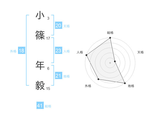小篠 年毅さんの天格は20画の1点!