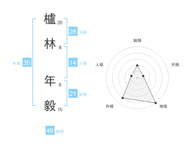 櫨林 年毅さんの外格は35画の4点!