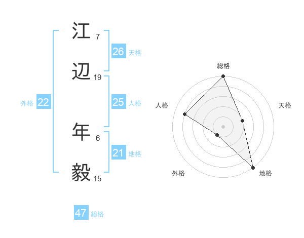 江辺 年毅さんの総格は47画の5点!