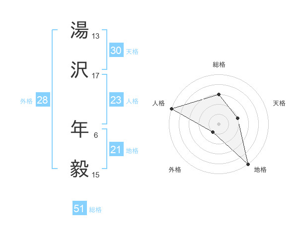湯沢 年毅さんを姓名の画数から五運を鑑定