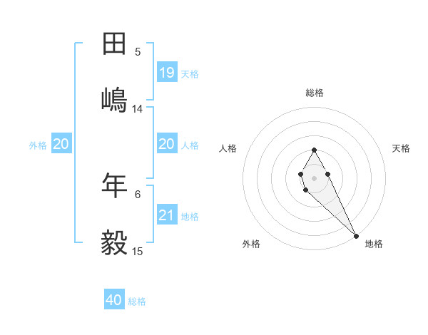 田嶋 年毅さんを姓名の画数から五運を鑑定