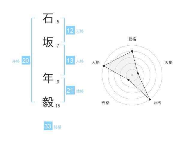 石坂 年毅さんを姓名の画数から五運を鑑定