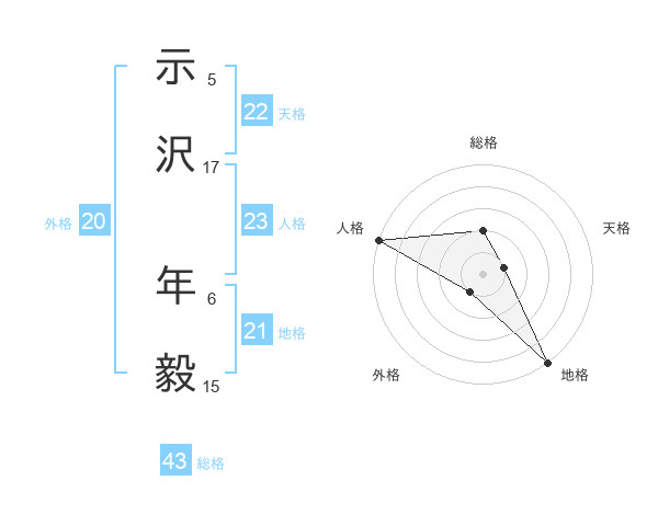 示沢 年毅さんの人格は23画の5点!