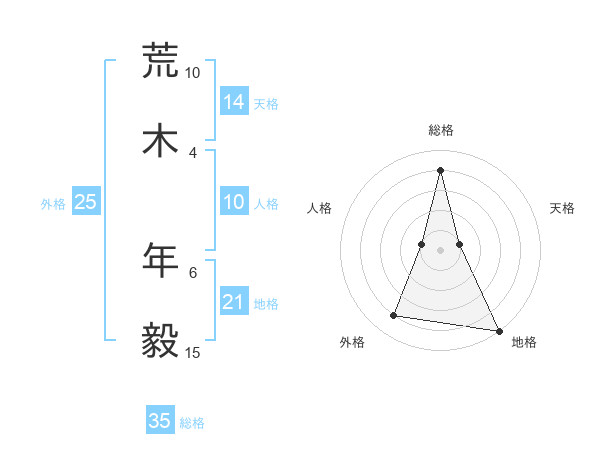 荒木 年毅さんを姓名の画数から五運を鑑定