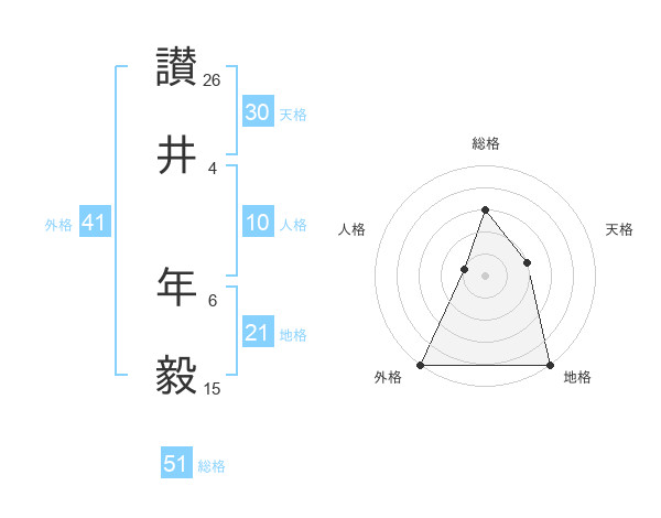 讃井 年毅さんを姓名の画数から五運を鑑定