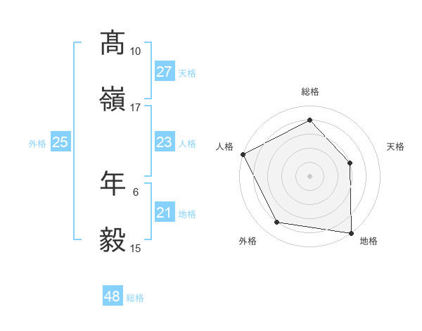 髙嶺 年毅さんの総格は48画の4点!