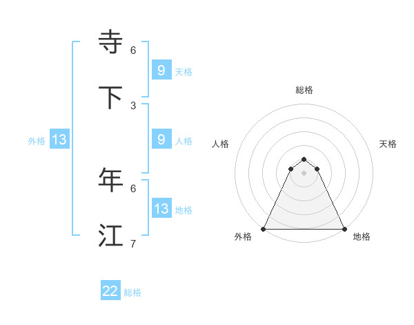 寺下 年江さんの外格は13画の5点!