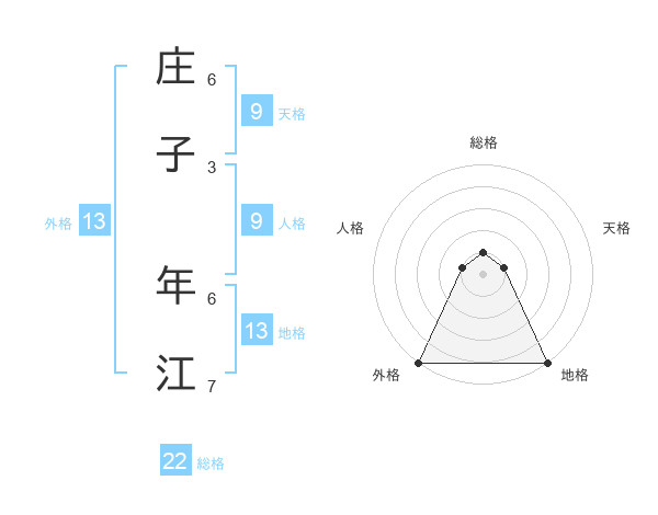 庄子 年江さんの総格は22画の1点!