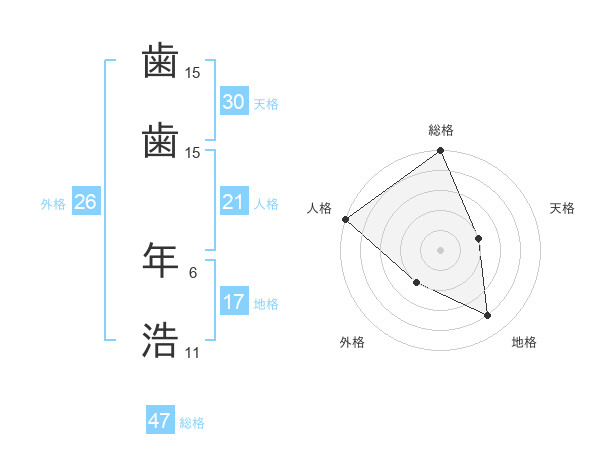 歯歯 年浩さんの総格は47画の5点!