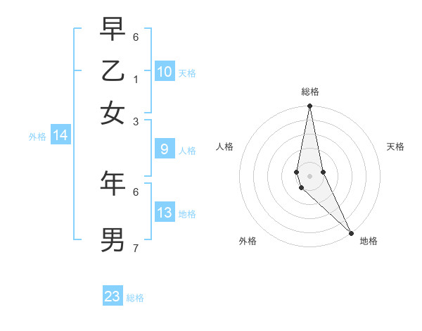 早乙女 年男さんの総格は23画の5点!