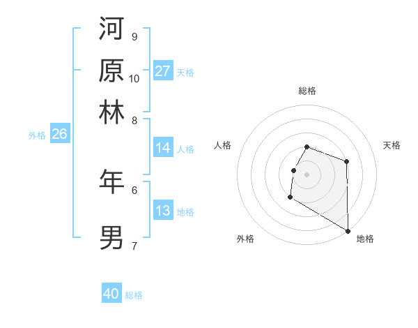 河原林 年男さんの総格は40画の2点!