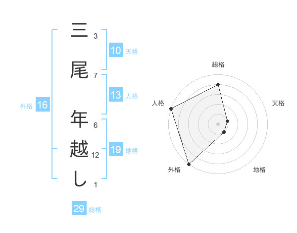 三尾 年越しさんを姓名の画数から五運を鑑定