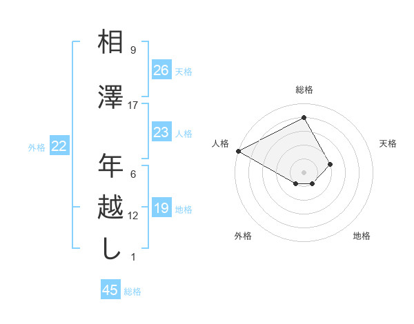 相澤 年越しさんの総格は45画の4点!