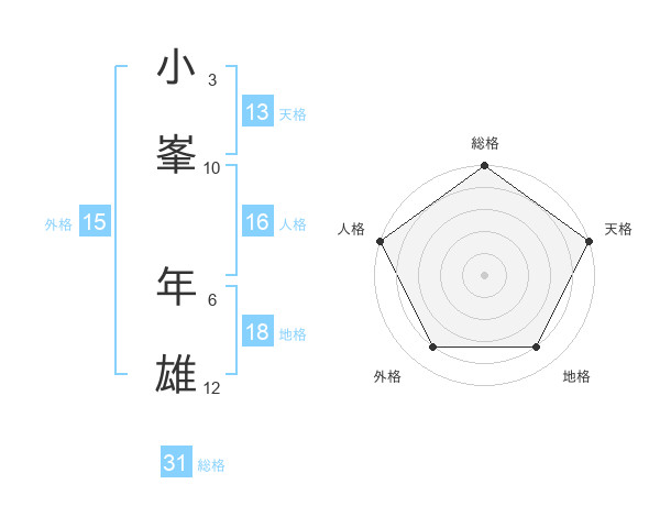 小峯 年雄さんの総格は31画の5点!