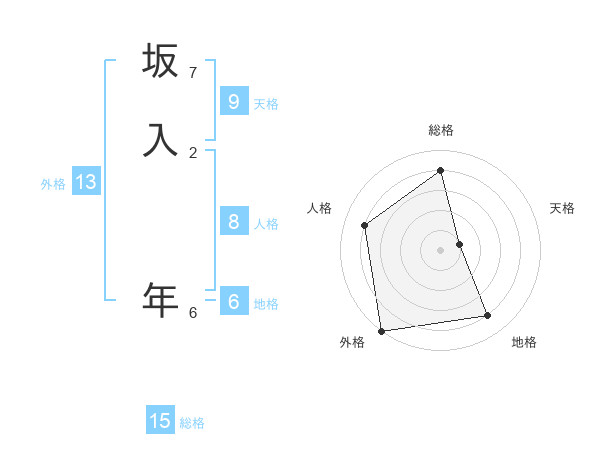 坂入 年さんの外格は13画の5点!
