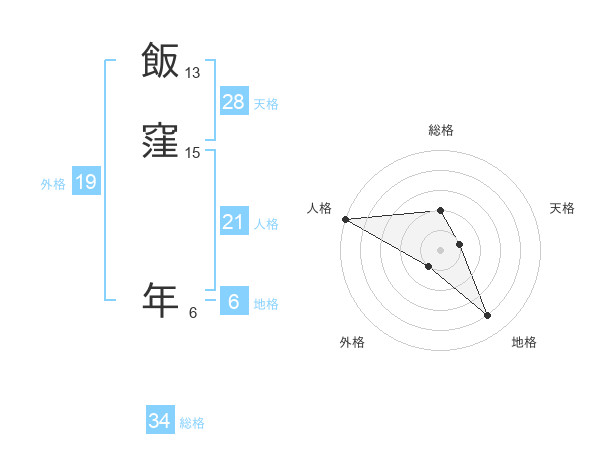 飯窪 年さんの総格は34画の2点!