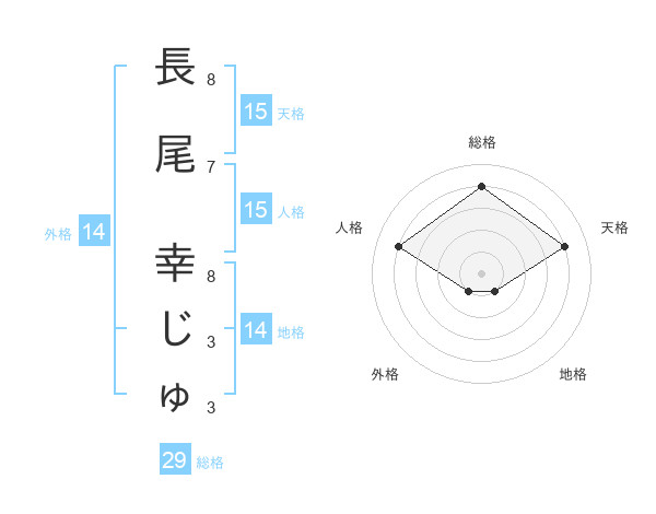 長尾 幸じゅさんを姓名の画数から五運を鑑定