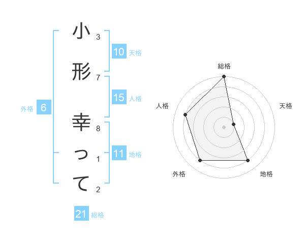 小形 幸ってさんを姓名の画数から五運を鑑定