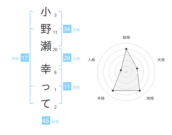 小野瀬 幸ってさんを姓名の画数から五運を鑑定