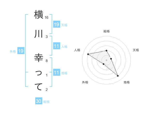 横川 幸ってさんを姓名の画数から五運を鑑定