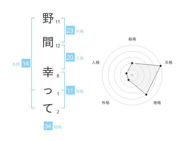 野間 幸ってさんを姓名の画数から五運を鑑定
