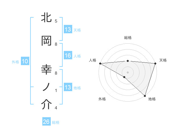 北岡 幸ノ介さんを姓名の画数から五運を鑑定