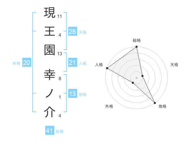 現王園 幸ノ介さんを姓名の画数から五運を鑑定